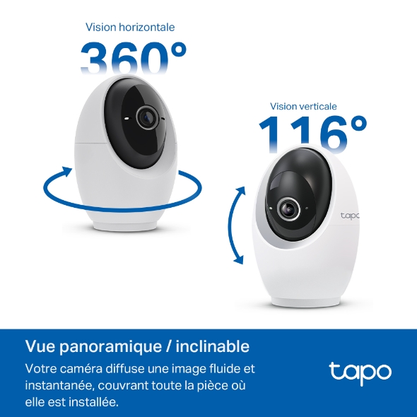 - Large gamme de mouvements : profitez d'une plage horizontale complète de 360º et d'une plage verticale de 116º pour le panoramique et l'inclinaison, vous permettant de couvrir plus de zone.