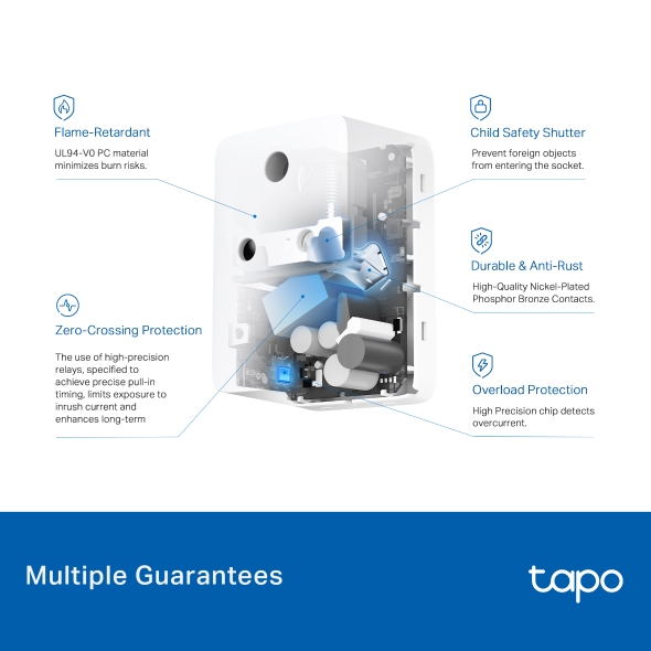high-precision relays, specified to achieve precise pull-in timing, limits exposure to inrush current and enhances long-term durability. Durable & Anti-Rust High-Quality Nickel-Plated Phosphor Bronze Contacts. Overload Protection High Precision chip detects overcurrent.