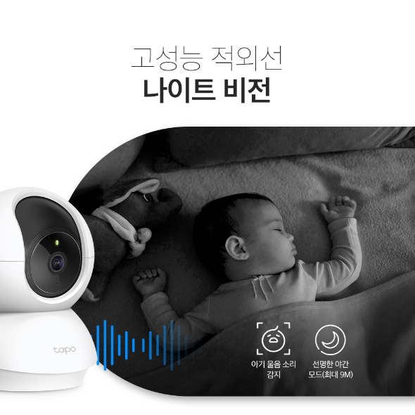 고성능 나이트 비전과 아기 울음소리 감지가 내장되어 있는 Tapo 카메라는 하루 종일 아기를 돌볼 수 있도록 보조해줍니다.