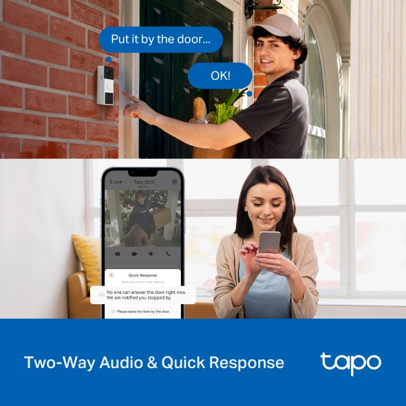 - Двусторонняя аудиосвязь: Общайтесь с гостями и курьерами у вашей двери в режиме реального времени благодаря кристально чистому двустороннему звуку.
