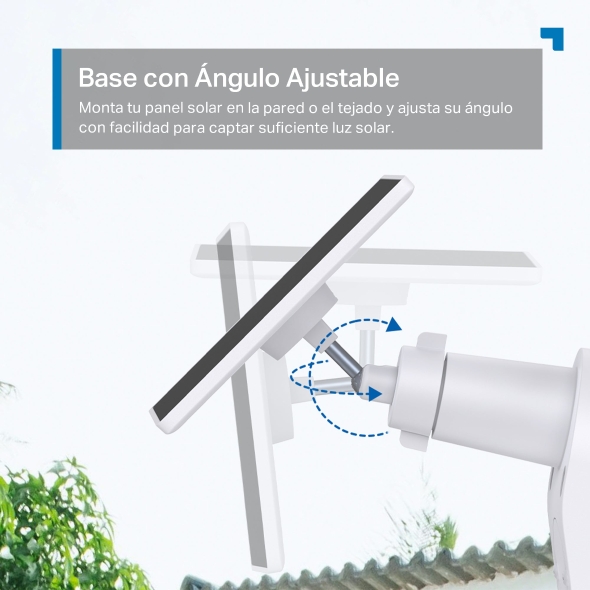 - Base Ajustable. Monta tu panel solar en la pared o el tejado y ajusta su ángulo para captar suficiente luz solar.