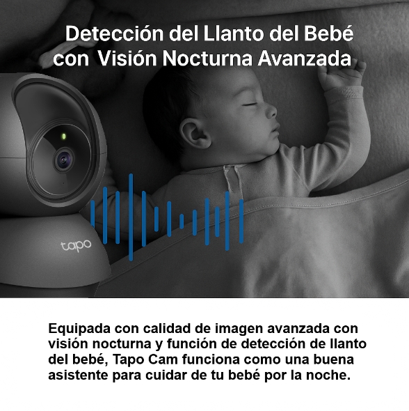 Incorporada con visión nocturna avanzada y detección de llanto de bebé, la cámara Tapo refuerza el cuidado de tu bebé las 24 horas del día.
